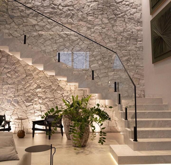 O revestimento em Pedra Moledo Branca Mármore Travertino é ideal para quem busca um acabamento sofisticado e atemporal. Com textura rústica e tonalidade clara, valoriza qualquer ambiente com um toque moderno e natural.